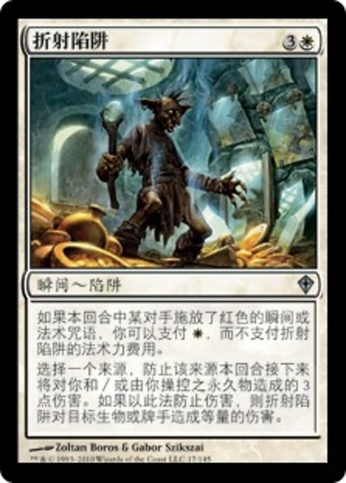 ![]() Variations— Parts— | Refraction TrapIf an opponent cast a red instant or sorcery spell this turn, you may pay Prevent the next 3 damage that a source of your choice would deal to you and/or permanents you control this turn. If damage is prevented this way, Refraction Trap deals that much damage to any target.