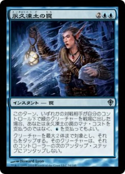 ![]() Variations— Parts— | Permafrost TrapIf an opponent had a green creature enter the battlefield under their control this turn, you may pay Tap up to two target creatures. Those creatures don't untap during their controller's next untap step.