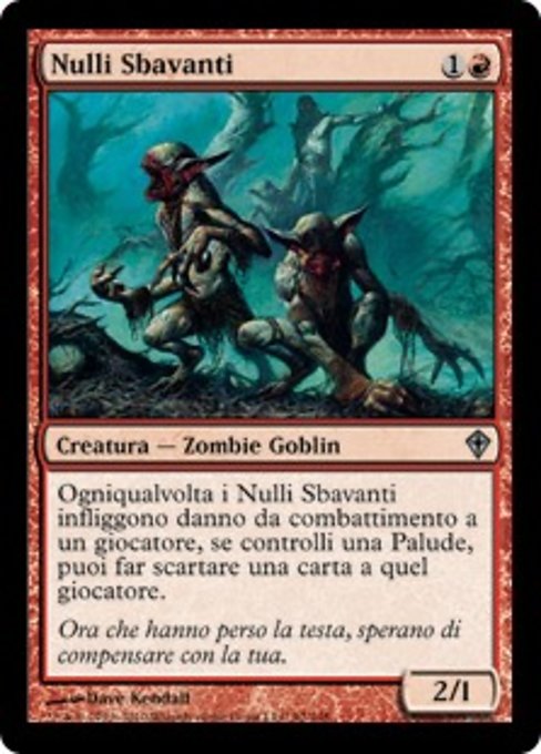 ![]() Variations— Parts— | Nulli Sbavanti2 / 1 Ogniqualvolta i Nulli Sbavanti infliggono danno da combattimento a un giocatore, se controlli una Palude, puoi far scartare una carta a quel giocatore