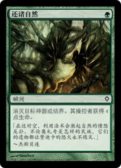 |  Variations— Parts— | Reivindicação da NaturezaDestrua o artefato ou encantamento alvo. Seu controlador ganha 4 pontos de vida.