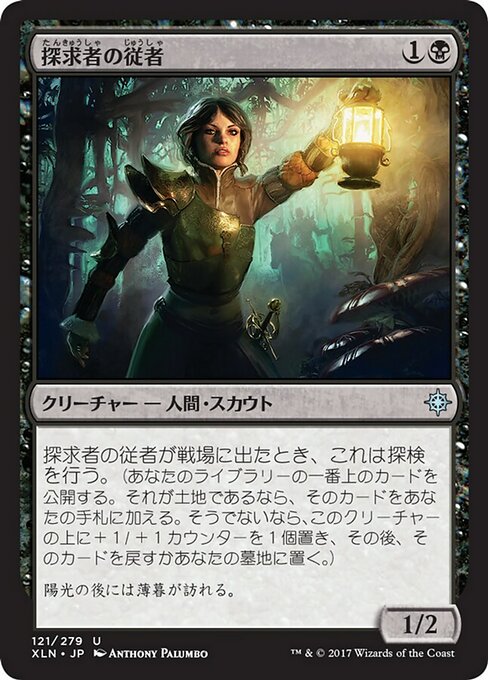 ![]() Variations— Parts— | Seekers' Squire1 / 2 When this creature enters, it explores. (Reveal the top card of your library. Put that card into your hand if it's a land. Otherwise, put a +1/+1 counter on this creature, then put the card back or put it into your graveyard.)