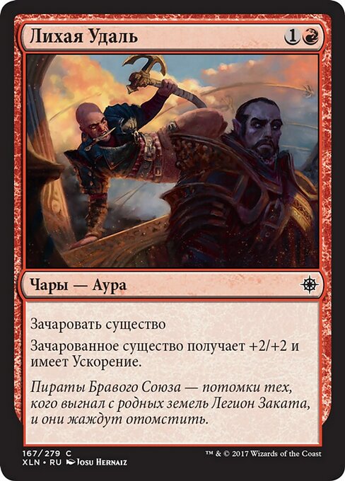 ![]() Variations— Parts— | SwashbucklingEnchant creature Enchanted creature gets +2/+2 and has haste.