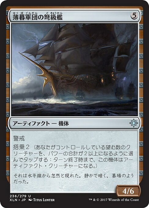 ![]() Variations— Parts— | Dusk Legion Dreadnought4 / 6 Vigilance Crew 2 (Tap any number of creatures you control with total power 2 or more: This Vehicle becomes an artifact creature until end of turn.)