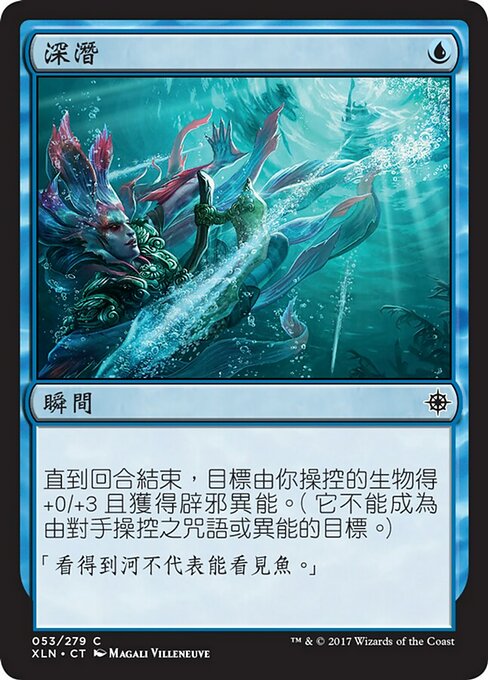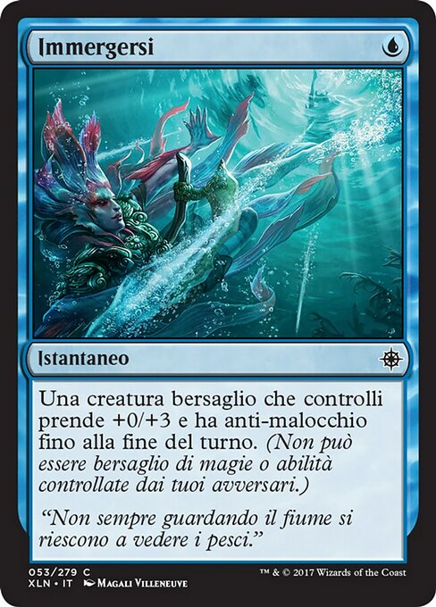 ![]() Variations— Parts— | Dive DownTarget creature you control gets +0/+3 and gains hexproof until end of turn. (It can't be the target of spells or abilities your opponents control.)
