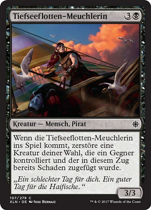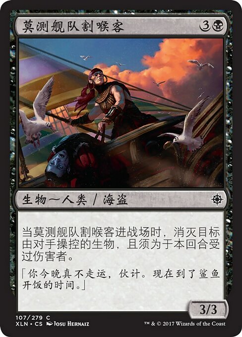 ![]() Variations— Parts— | Tagliagole della Flotta Abissale3 / 3 Quando la Tagliagole della Flotta Abissale entra nel campo di battaglia, distruggi una creatura bersaglio controllata da un avversario a cui è stato inflitto danno in questo turno.