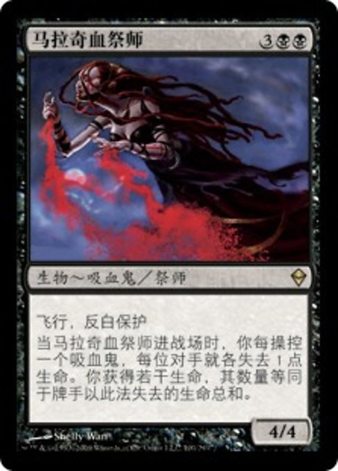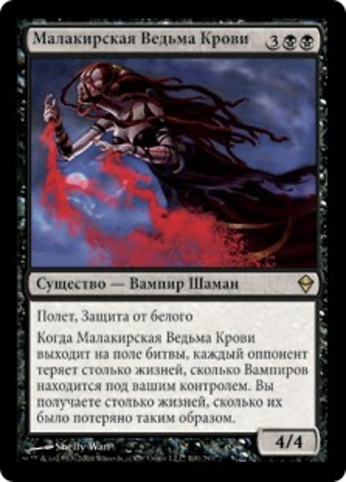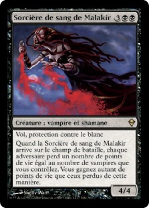 ![]() Variations— Parts— | Malakir Bloodwitch4 / 4 Flying, protection from white When this creature enters, each opponent loses life equal to the number of Vampires you control. You gain life equal to the life lost this way.