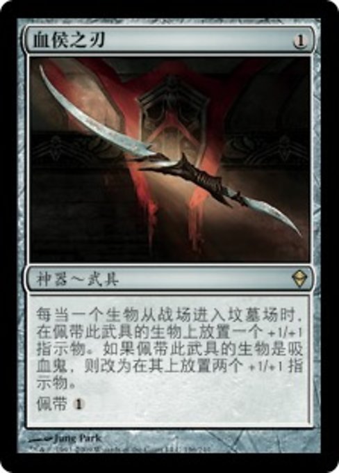 ![]() Variations— Parts— | Blade of the BloodchiefWhenever a creature dies, put a +1/+1 counter on equipped creature. If equipped creature is a Vampire, put two +1/+1 counters on it instead. Equip