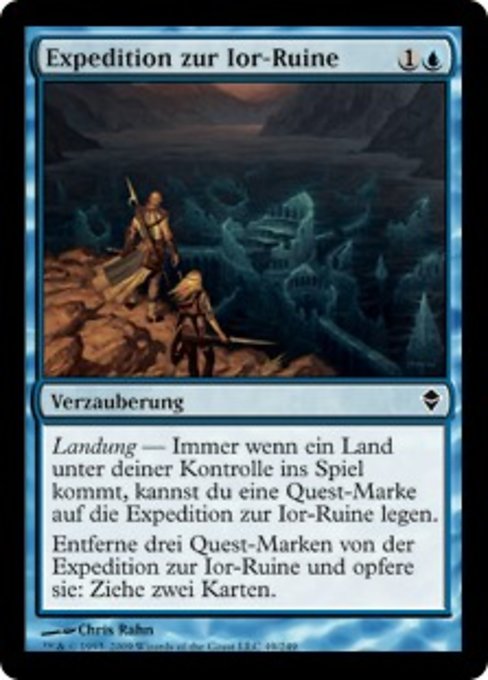 ![]() Variations— Parts— | Ior Ruin ExpeditionLandfall — Whenever a land you control enters, you may put a quest counter on this enchantment. Remove three quest counters from this enchantment and sacrifice it: Draw two cards.