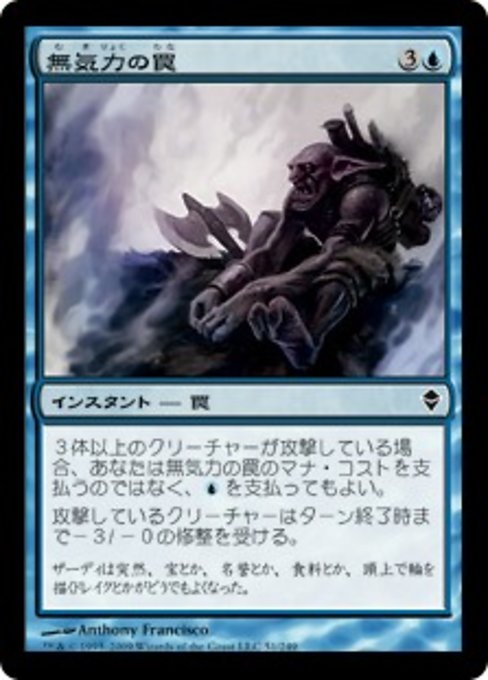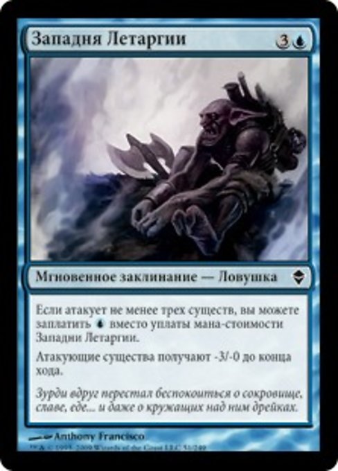 |  Variations— Parts— | Lethargy TrapIf three or more creatures are attacking, you may pay  Attacking creatures get -3/-0 until end of turn.