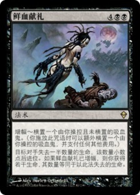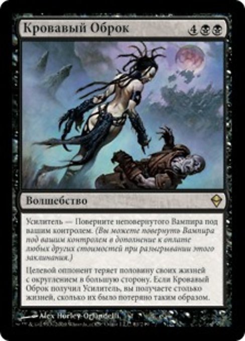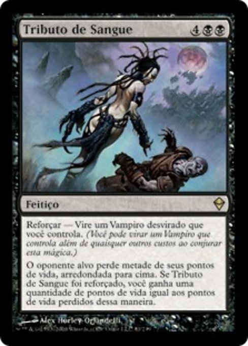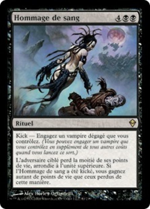 ![]() Variations— Parts— | Blood TributeKicker—Tap an untapped Vampire you control. (You may tap a Vampire you control in addition to any other costs as you cast this spell.) Target opponent loses half their life, rounded up. If this spell was kicked, you gain life equal to the life lost this way.