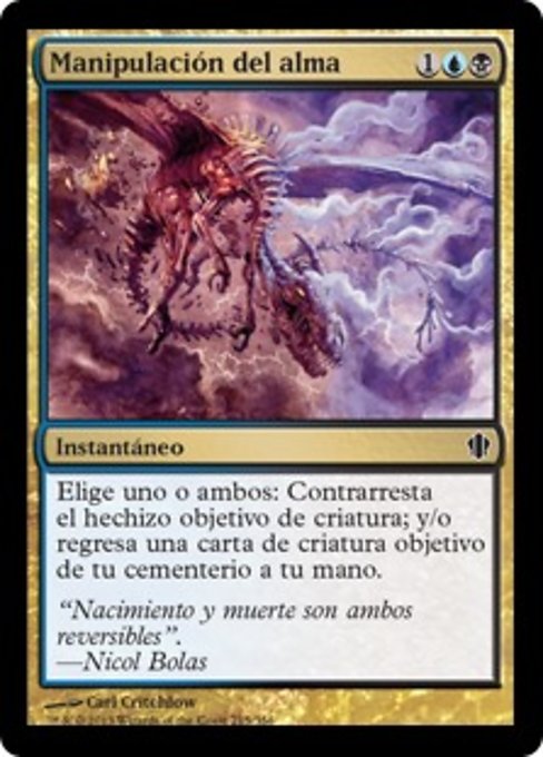 |  Variations— Parts— | Manipulación del almaElige uno o ambos: • Contrarresta el hechizo de criatura objetivo. • Regresa la carta de criatura objetivo de tu cementerio a tu mano.