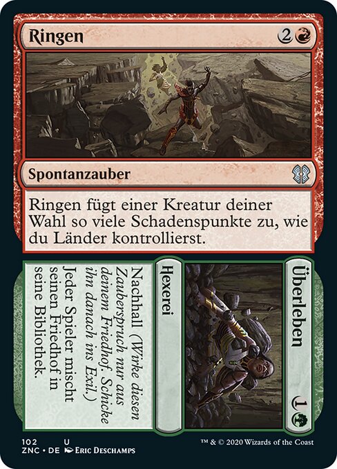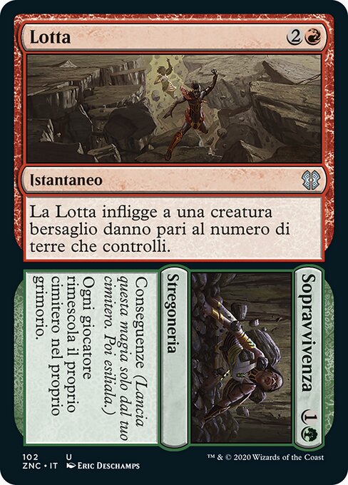 ![]() Variations— Parts— | EsforzarseEsforzarse hace una cantidad de daño a la criatura objetivo igual a la cantidad de tierras que controlas.