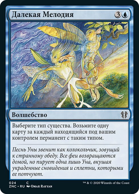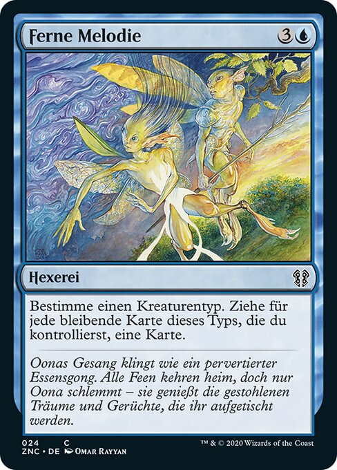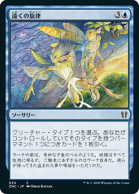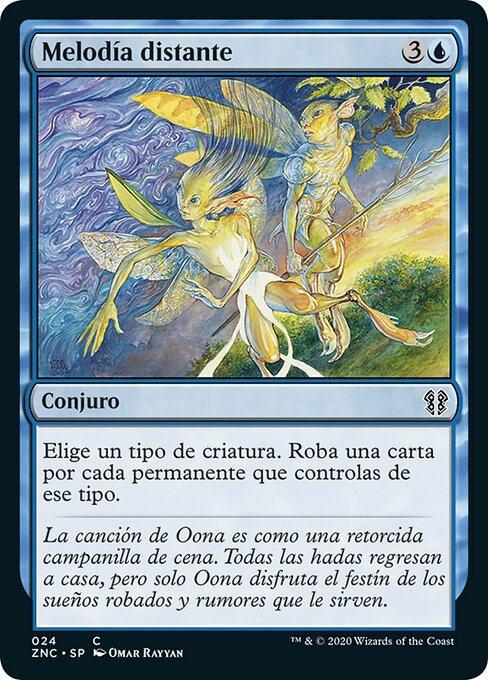 |  Variations— Parts— | Mélodie lointaineChoisissez un type de créature. Piochez une carte pour chaque permanent de ce type que vous contrôlez.
