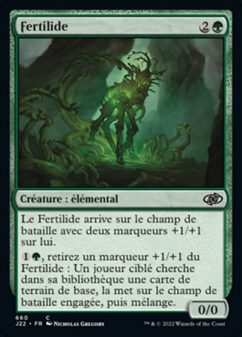 ![]() Variations— Parts— | Fertilide0 / 0 Le Fertilide arrive sur le champ de bataille avec deux marqueurs +1/+1 sur lui.