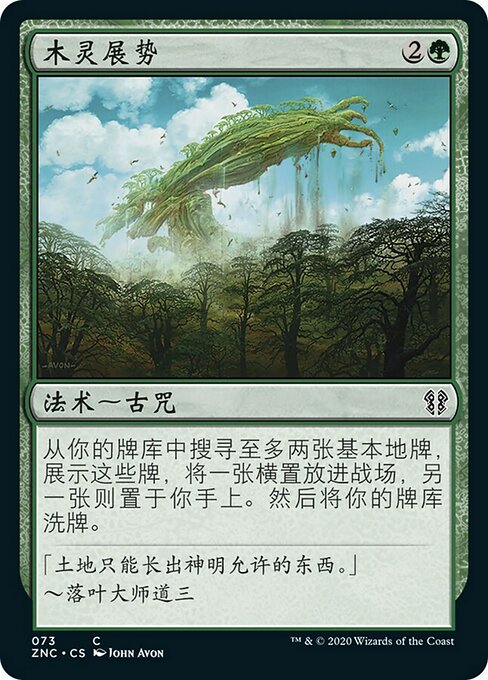 |  Variations— Parts— | Portée du kodamaCherchez dans votre bibliothèque jusqu'à deux cartes de terrain de base, révélez ces cartes et mettez-en une sur le champ de bataille engagée, et l'autre dans votre main. Mélangez ensuite votre bibliothèque.