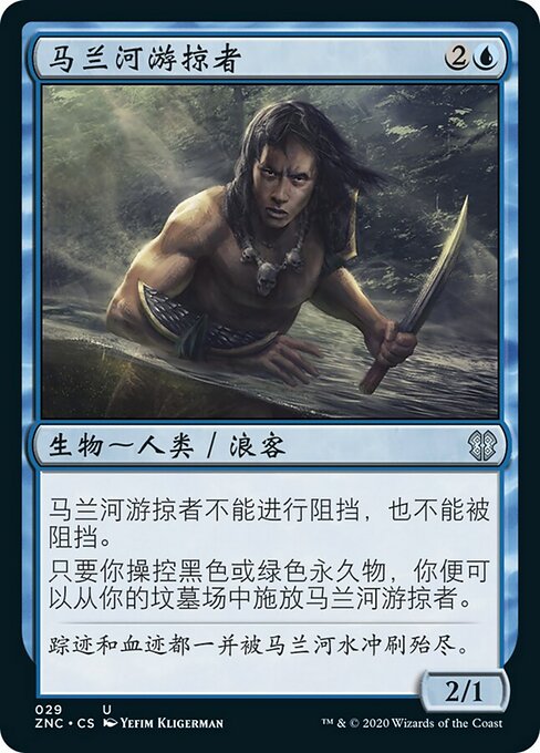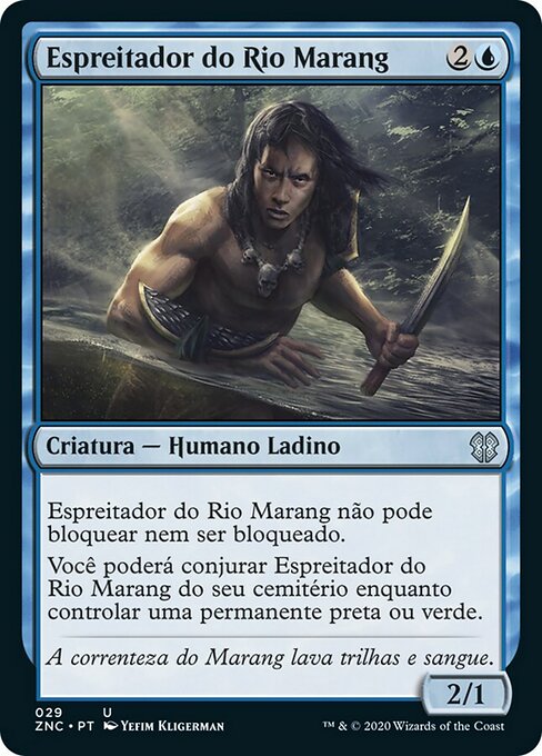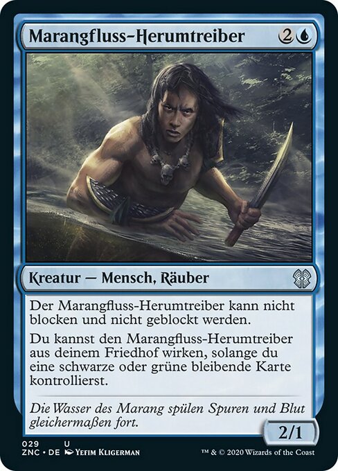 ![]() Variations— Parts— | Predatore del Fiume Marang2 / 1 Il Predatore del Fiume Marang non può bloccare e non può essere bloccato. Puoi lanciare il Predatore del Fiume Marang dal tuo cimitero fintanto che controlli un permanente nero o verde.