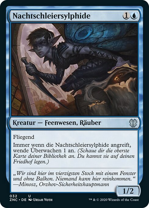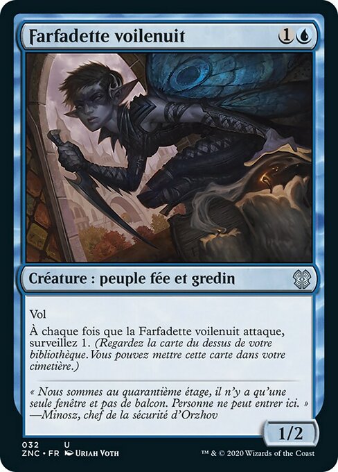 |  Variations— Parts— | 夜篷仙子1 / 2 飞行 每当夜篷仙子攻击时,刺探1。(检视你牌库顶的牌。你可以将该牌置入你的坟墓场。)