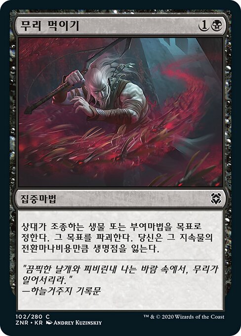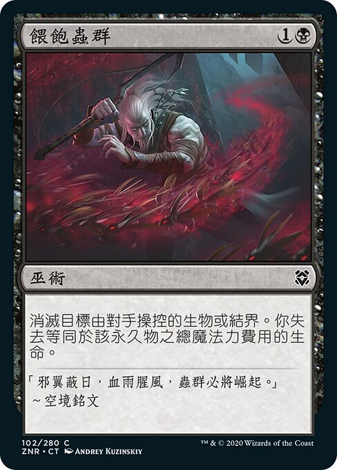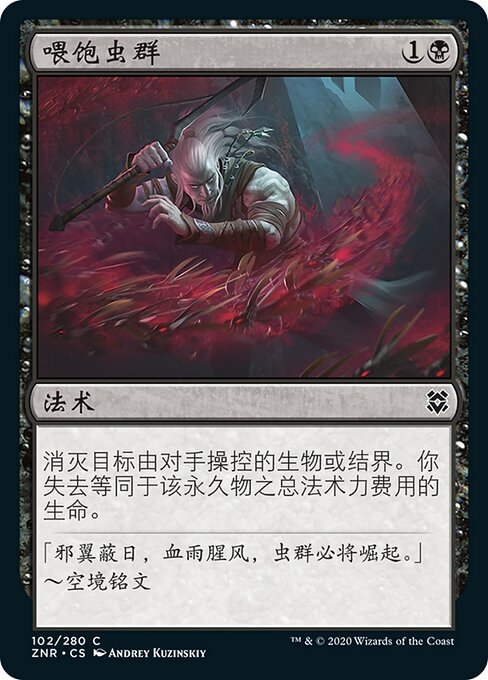 ![]() Variations— Parts— | Feed the SwarmDestroy target creature or enchantment an opponent controls. You lose life equal to that permanent's mana value.