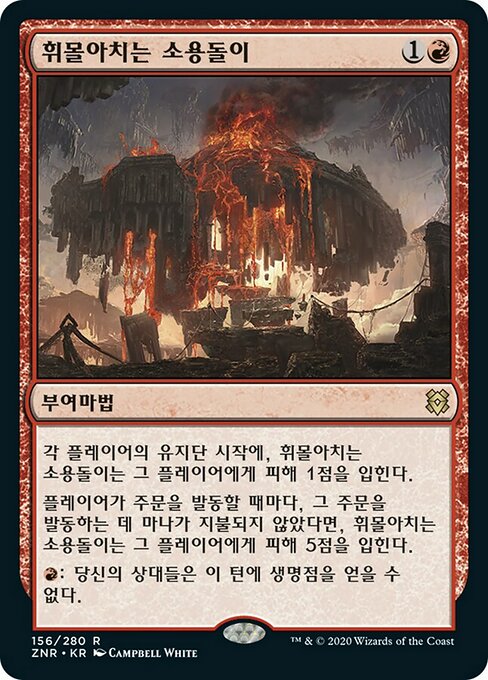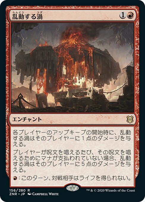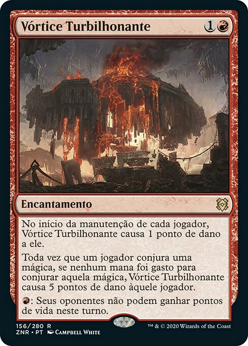 ![]() Variations : 1Parts— | Roiling VortexAt the beginning of each player's upkeep, this enchantment deals 1 damage to them. Whenever a player casts a spell, if no mana was spent to cast that spell, this enchantment deals 5 damage to that player.