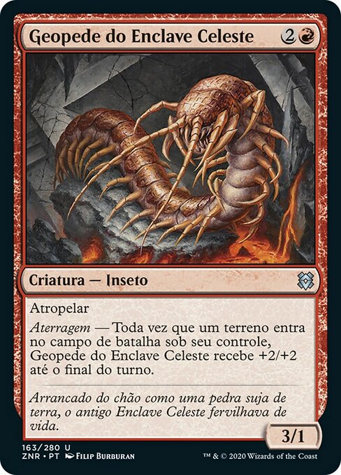 ![]() Variations : 1Parts— | Skyclave Geopede3 / 1 Trample Landfall — Whenever a land you control enters, this creature gets +2/+2 until end of turn.