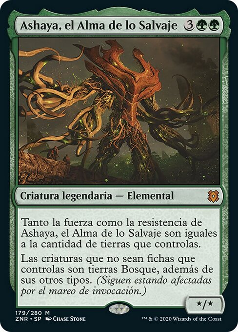 ![]() Variations : 1Parts— | Ashaya, Soul of the Wild* / * Ashaya's power and toughness are each equal to the number of lands you control. Nontoken creatures you control are Forest lands in addition to their other types. (They're still affected by summoning sickness.)