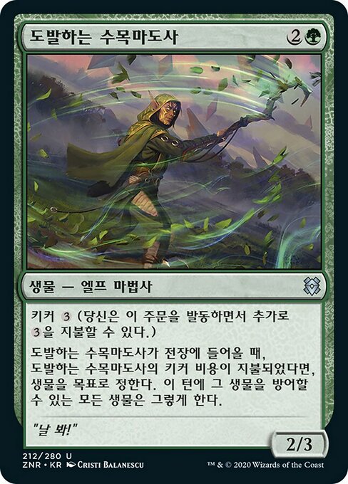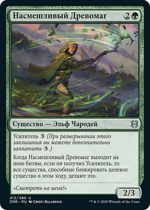 ![]() Variations— Parts— | Taunting Arbormage2 / 3 Kicker When this creature enters, if it was kicked, all creatures able to block target creature this turn do so.