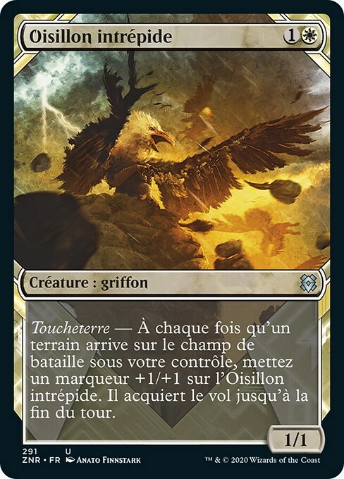 ![]() Variations : 1Parts— | Fearless Fledgling1 / 1 Landfall — Whenever a land you control enters, put a +1/+1 counter on this creature. It gains flying until end of turn.