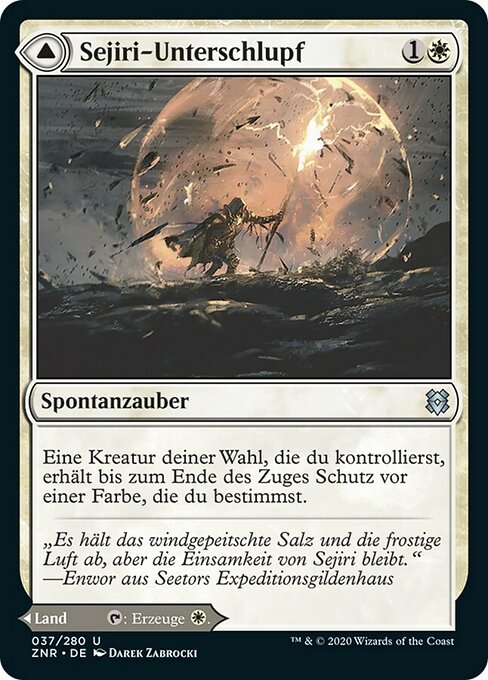 ![]() Variations— Parts— | Sejiri ShelterTarget creature you control gains protection from the color of your choice until end of turn.