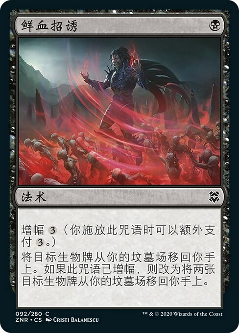 ![]() Variations— Parts— | Blood BeckoningKicker Return target creature card from your graveyard to your hand. If this spell was kicked, instead return two target creature cards from your graveyard to your hand.