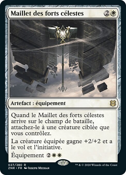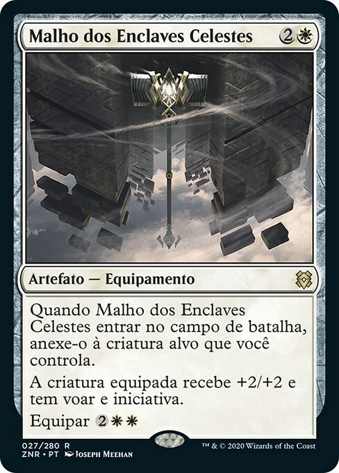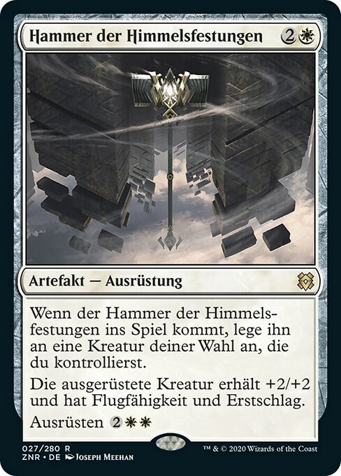 |  Variations— Parts— | Maglio delle Enclave CelestiQuando il Maglio delle Enclave Celesti entra nel campo di battaglia, assegnalo a una creatura bersaglio che controlli. La creatura equipaggiata prende +2/+2 e ha volare e attacco improvviso. Equipaggiare